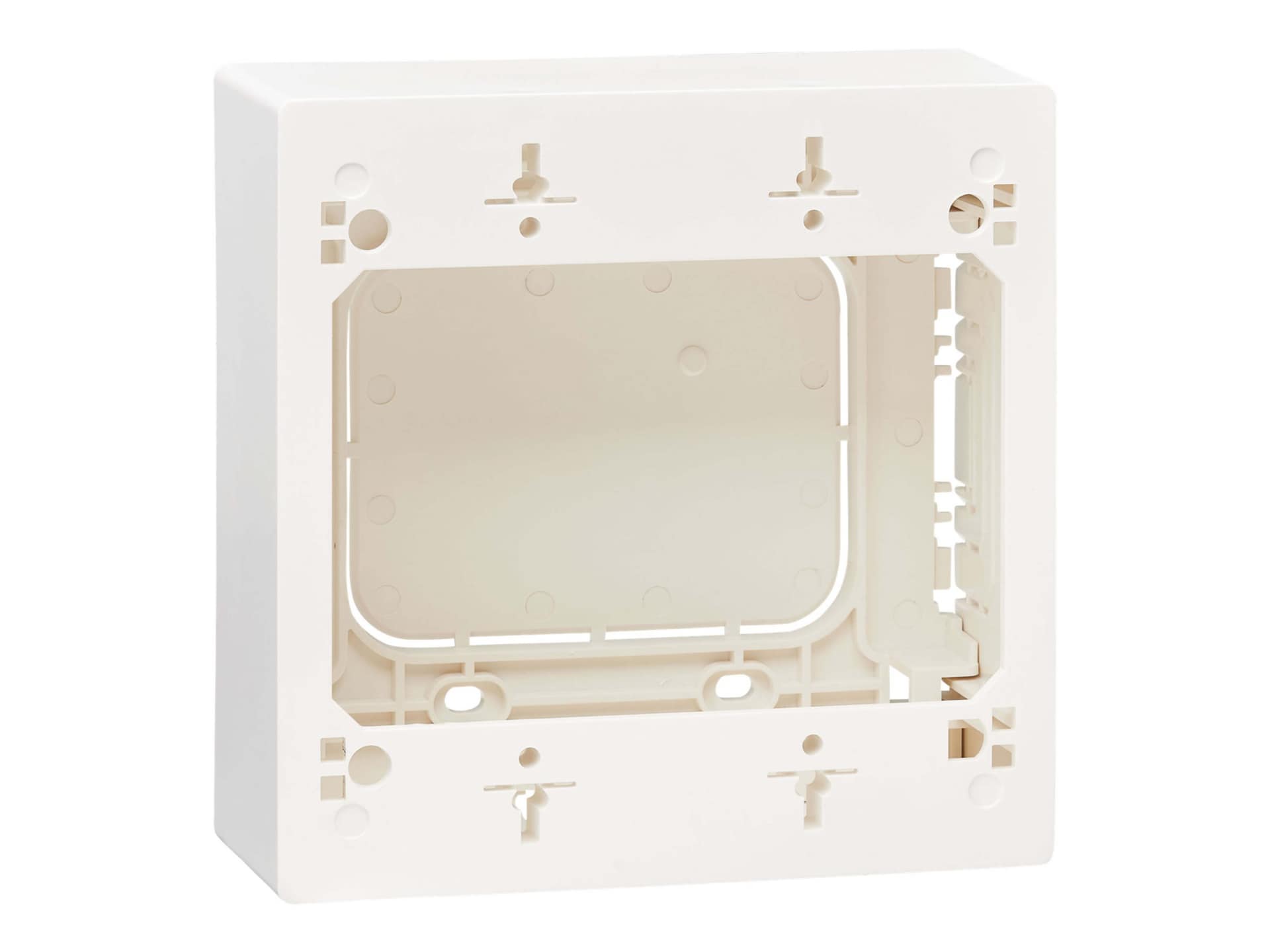 Flush or surface mount accessory fits screw cover type 1 boxes to prevent public access to lighting switches and controls.
